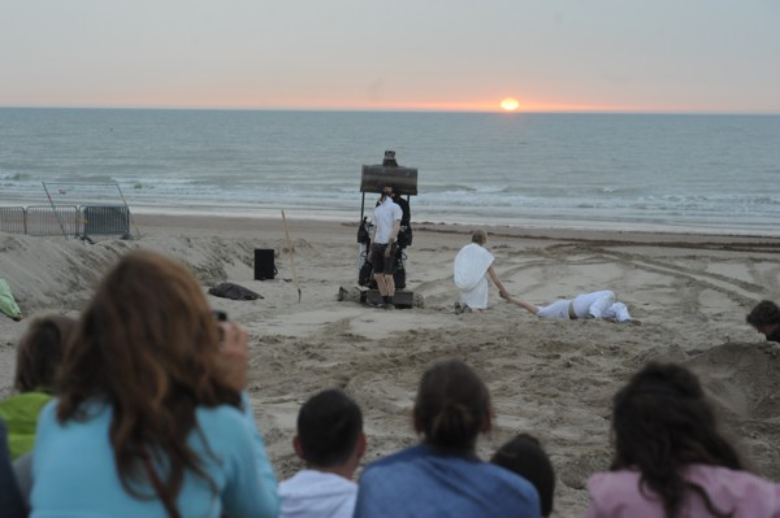 At Dansand! festival Meg Stuart offered a sequel to the ATELIER she created in the Kaaistudios (Brussels) in early 2011. Once again she was joined by musician Brendan Dougherty, scenographer Jozef Wouters and costume designer Jean-Paul Lespagnard. Stuart also invited performers Anja Müller and Roger Sala Reyner who took part in the two evenings of improvisation. ATELIER II took place in a challenging setting on the beach of Ostend on June 28 & 29.